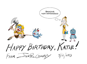 Some time during my birthday yesterday, I whipped up this little birthday present for talented cartoonist/animator Katie Rice, whose birthday is a day after mine! For a quick drawing, this was a lot of fun to do. Done on tablet in Flash.